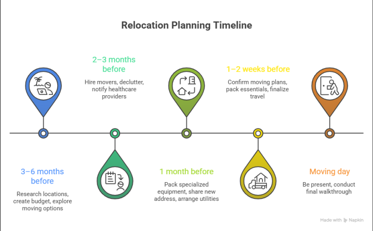 As with most major life transitions, the farther out you begin the planning, the smoother the experience likely will be. Starting your relocation process in advance allows for better decision-making and avoids last-minute scrambling. A timeline can keep everything on track.