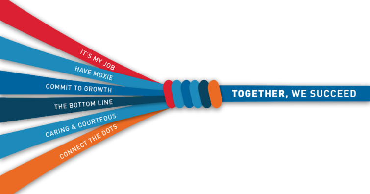 For example, “It’s my job” is a core value here. That means embracing accountability and taking ownership of actions whether an employee supports an internal group or the customer. We talk about it. We give badges out to recognize it. It is a big deal to us.